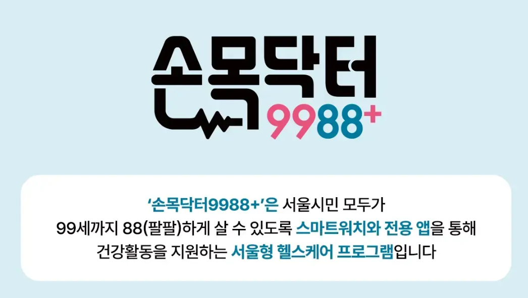 손목닥터 9988이란,서울시민 모두 99세까지 88하게 살수있도록 스마트워치 전용 앱을 통해 건강활동을 지원하는
