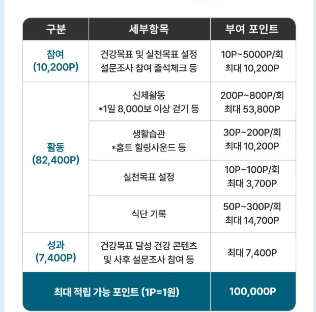 • 앱의 권장 운동 및 스트레칭을 꾸준히 실천할 경우 누적 보너스 지급
