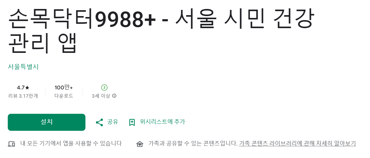 • 안드로이드 사용자의 경우: 구글 플레이스토어에서 "손목닥터9988"을 검색하여 설치