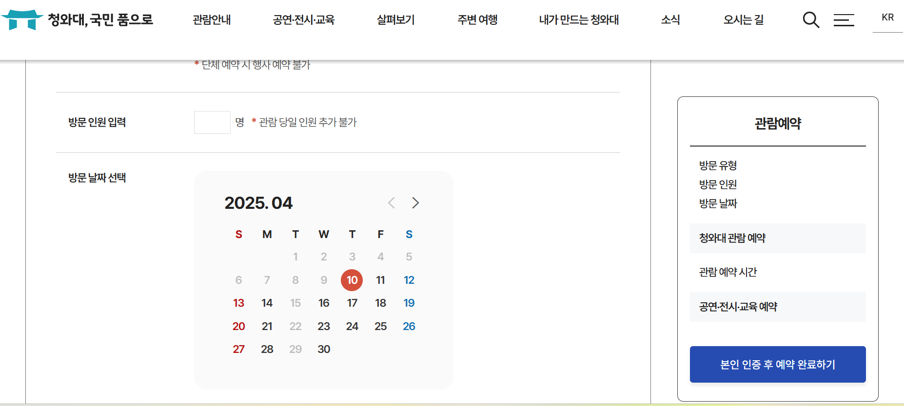 - 예약 가능 기간: 관람 희망일 기준 30일 전부터 예약 가능